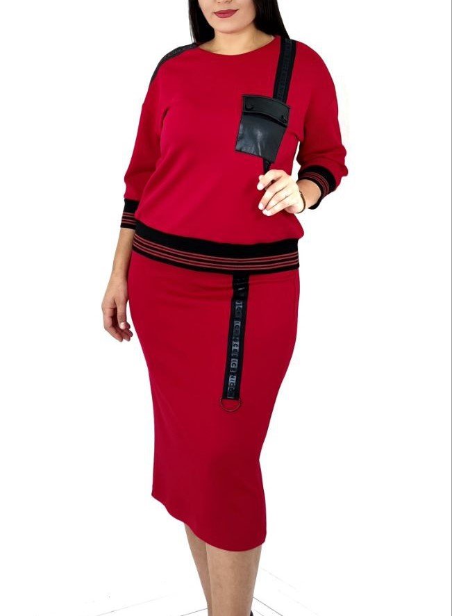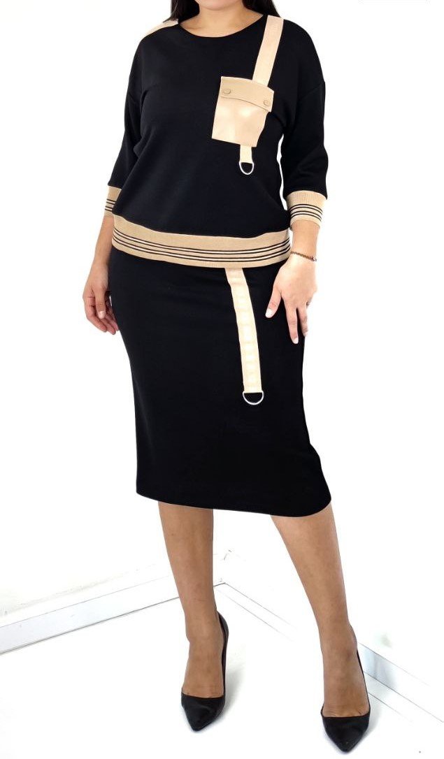 2 PC RIBBED TOP AND MATCHING MIDI SKIRT