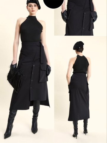 ANGLE BUTTON FRONT CARGO STYLE SKIRT