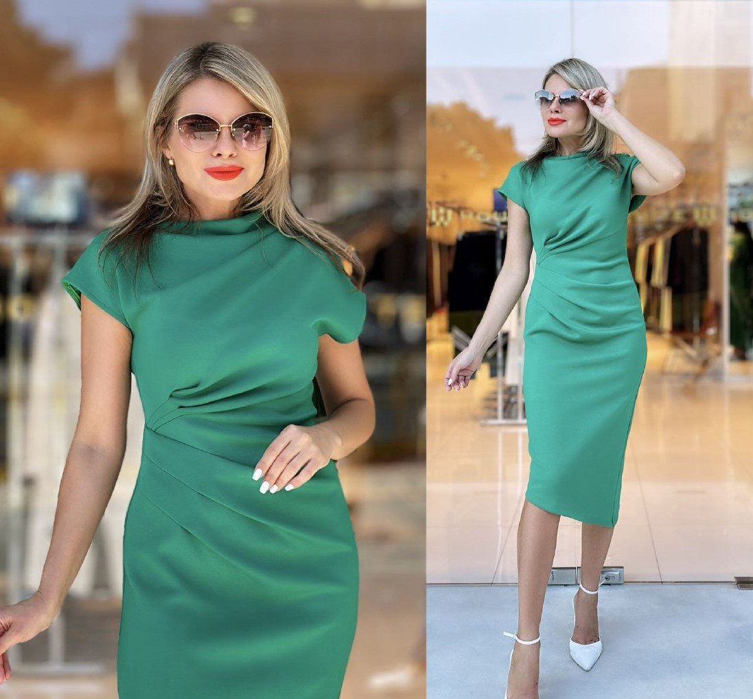 ANGULAR RUCHED MIDI DRESS