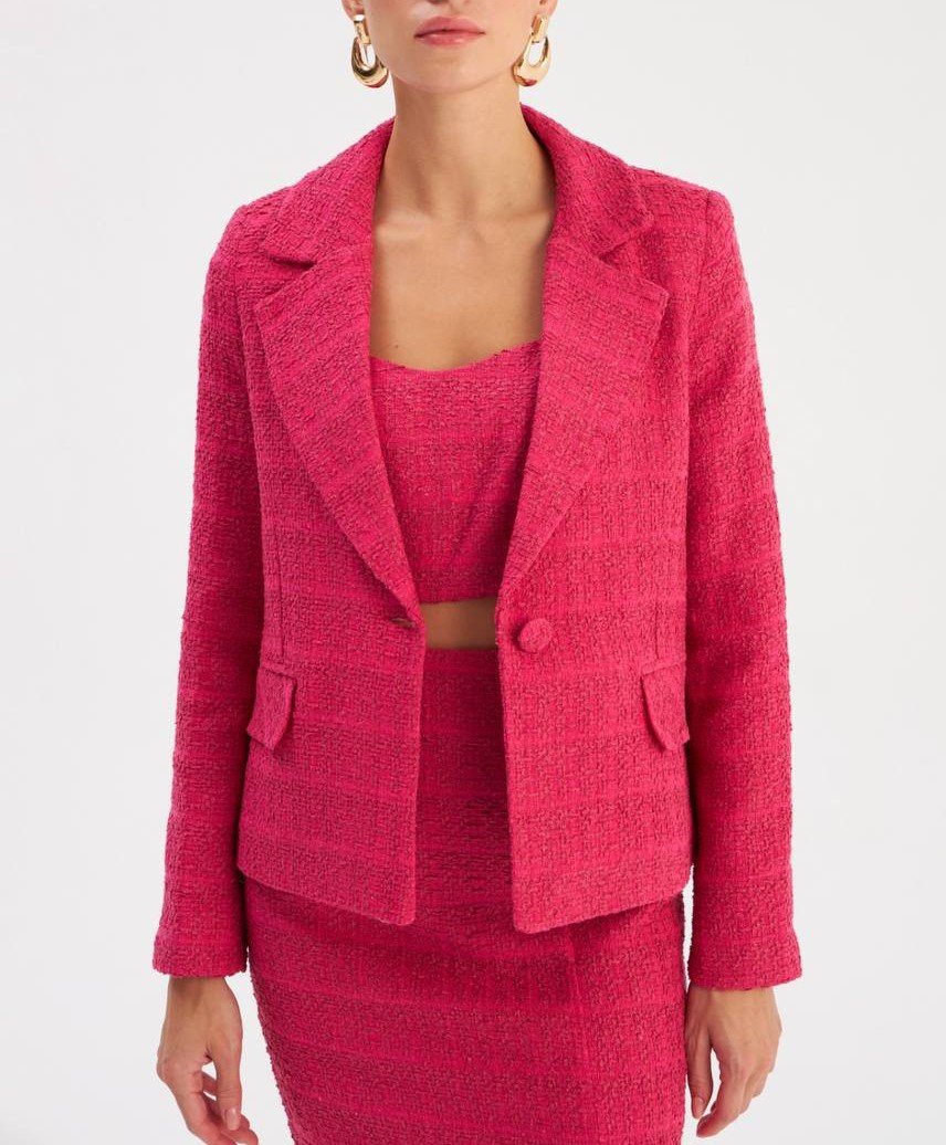 BOUCLE FABRIC SHORT BOXY BLAZER