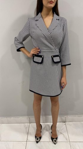 CHECKED WRAP DRESS WITH FRONT POCKET DETAIL