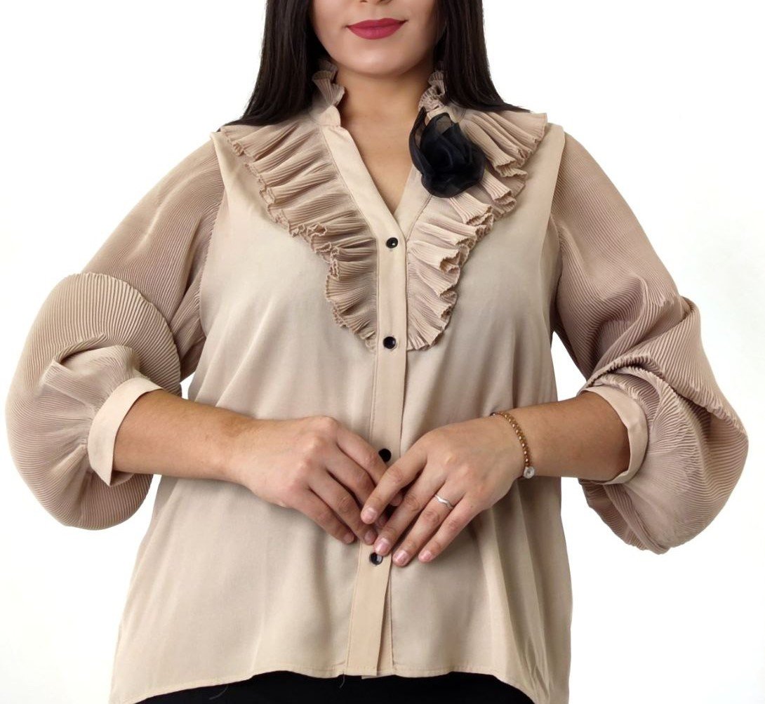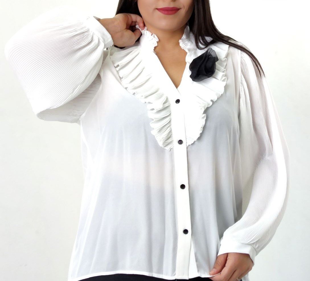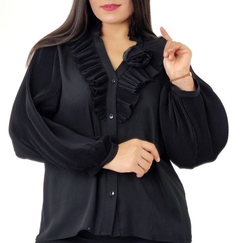 COLLARED OPEN NECK BLOUSE WITH RUFFLE DETAIL