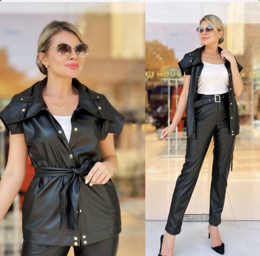 COLLARED SNAP FRONT FAUX LEATHER VEST