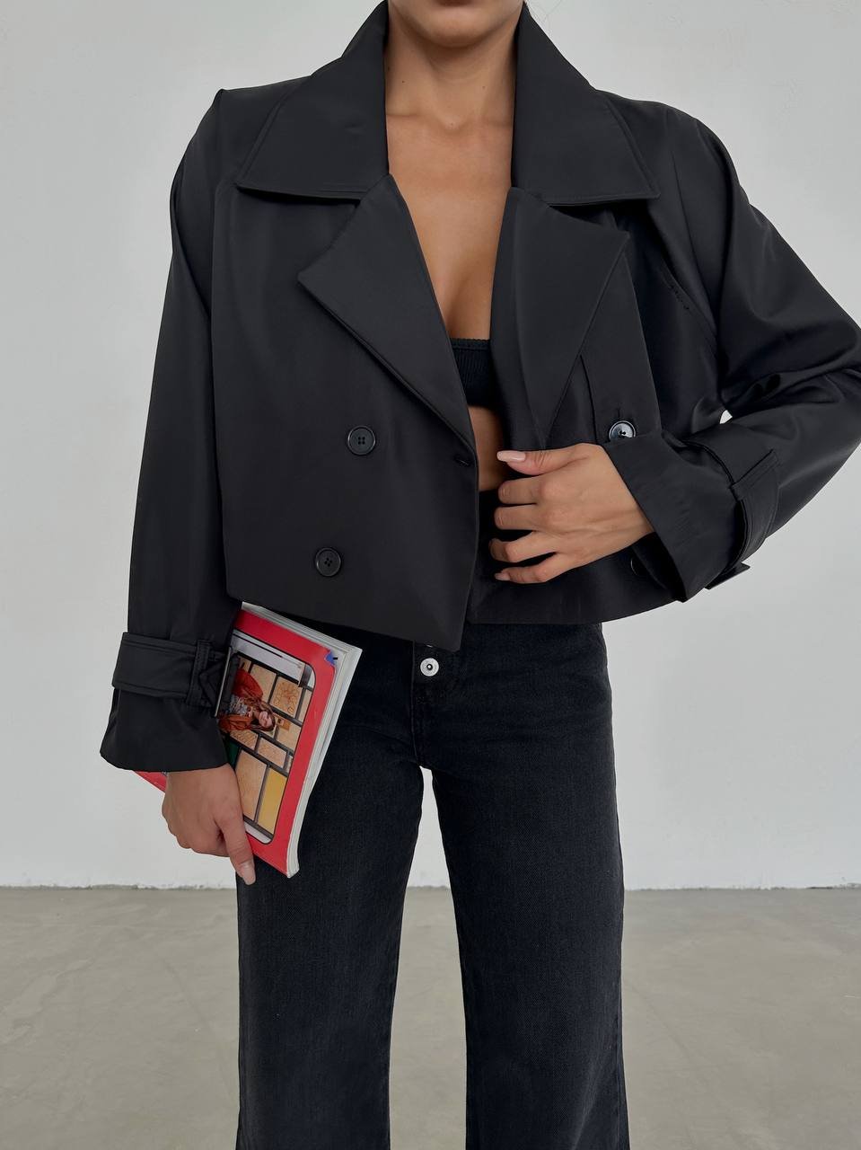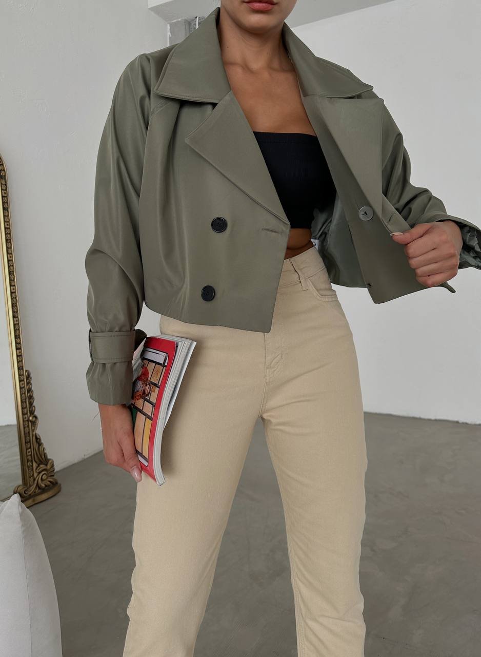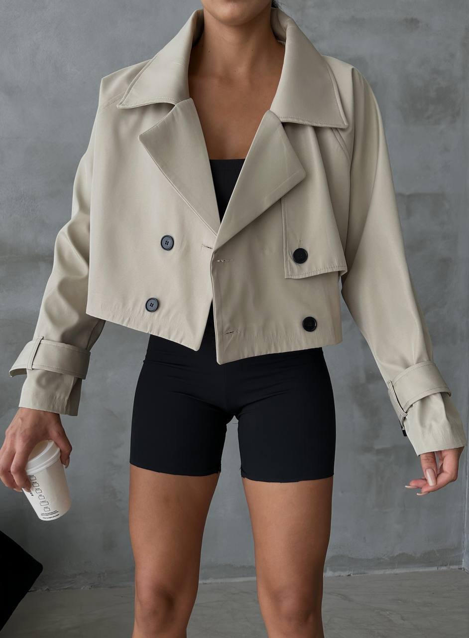COTTON GLOSSY DOUBLE BREASTED CROP JACKET