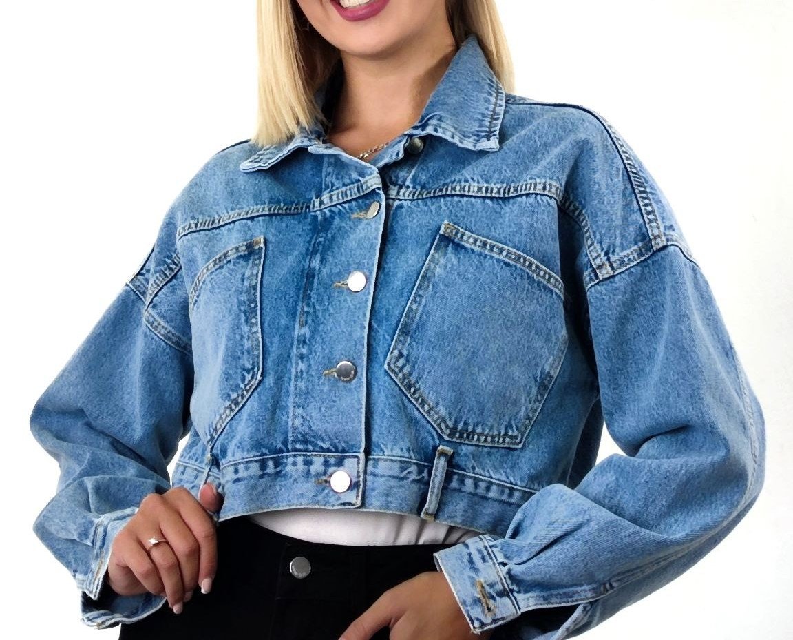CROPPED JACKET WITH BACK BUTTON DESIGN