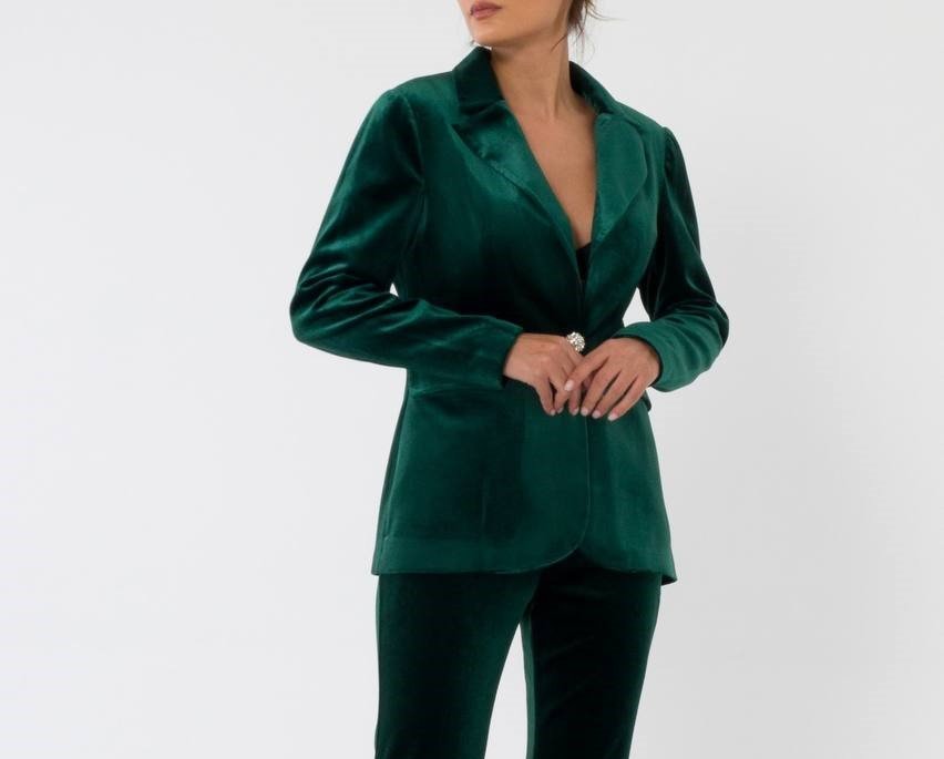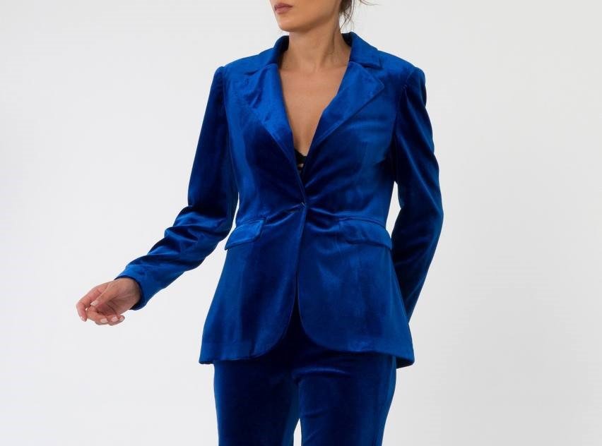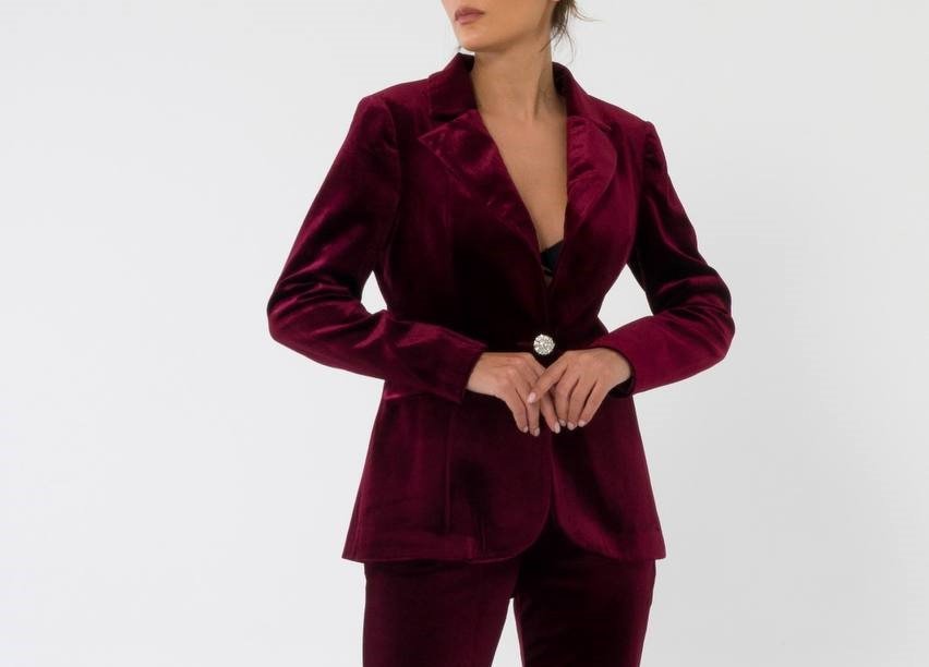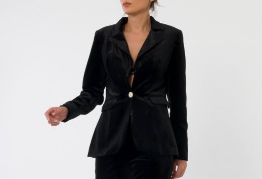 CRUSHED VELVET BLAZER WITH 1 BUTTON CLOSURE