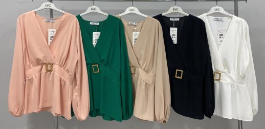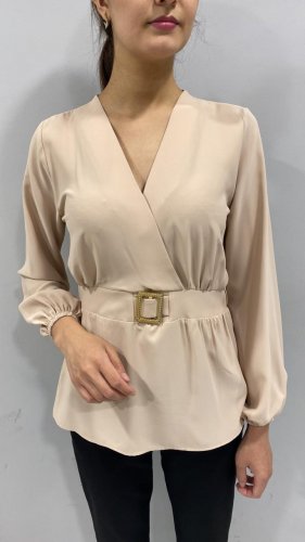 CUFFED LONG SLEEVE BLOUSE WITH BELT DETAIL