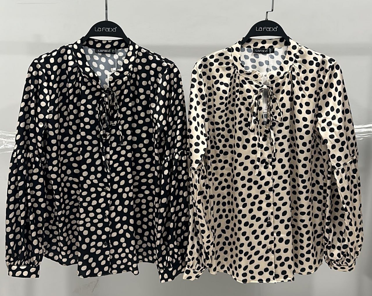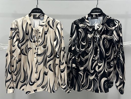 CURVED SILKY BLOUSE WITH TIE NECKLINE