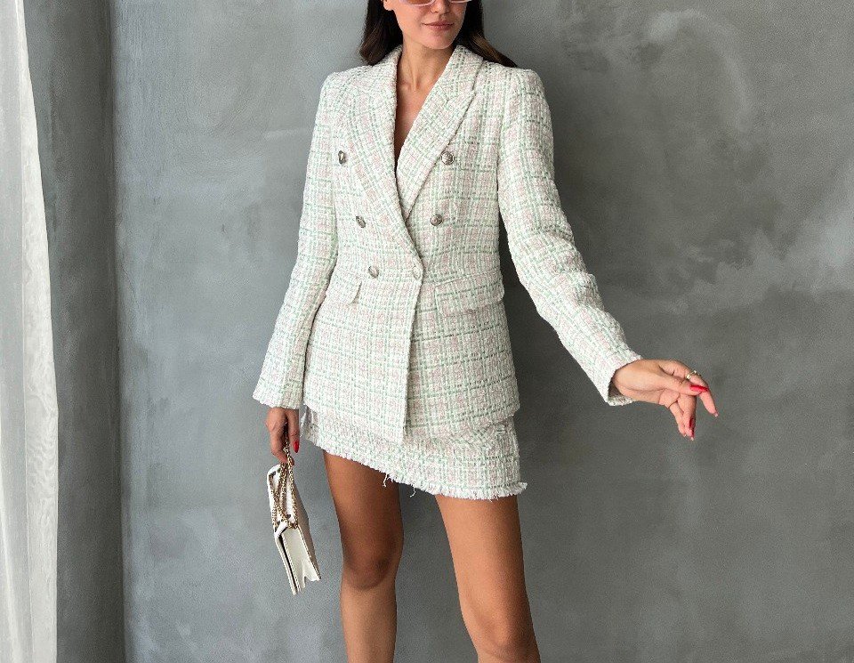 CHANEL STYLE DOUBLE BREASTED BLAZER AND MINI SKIRT