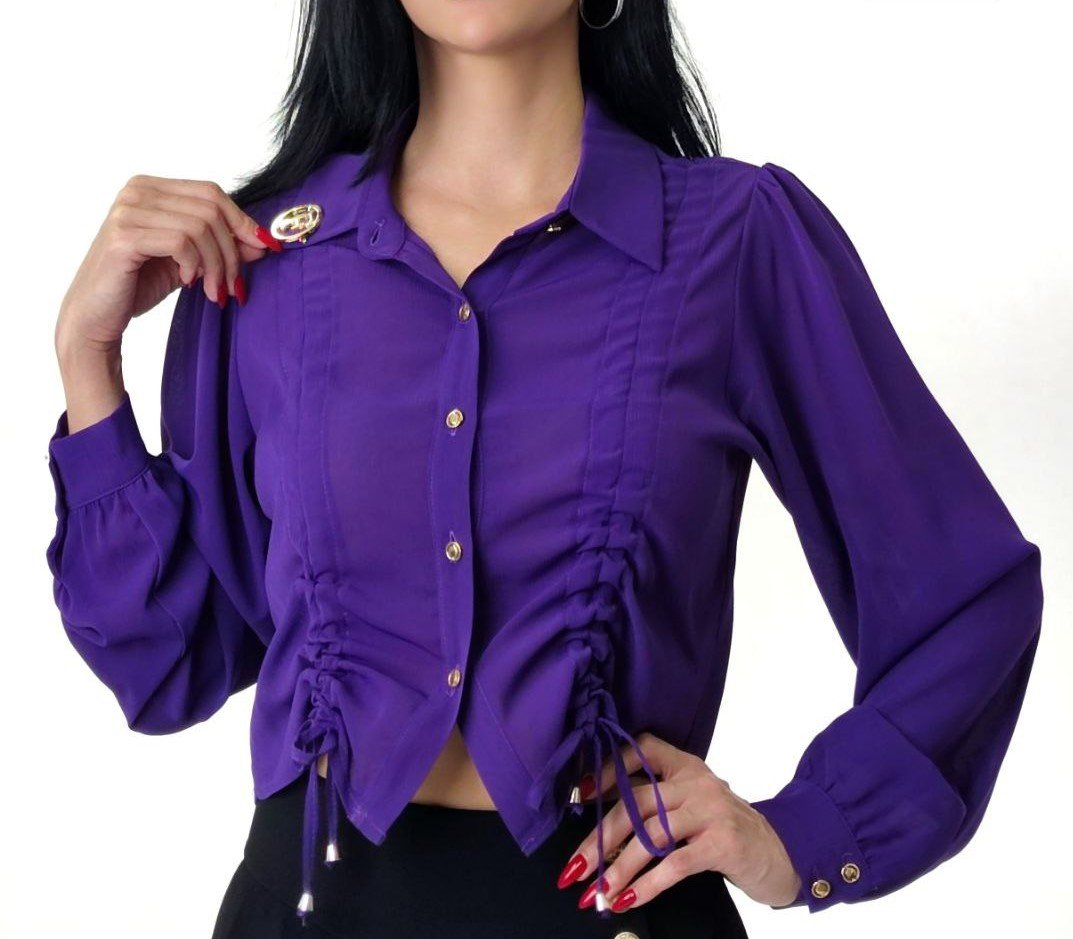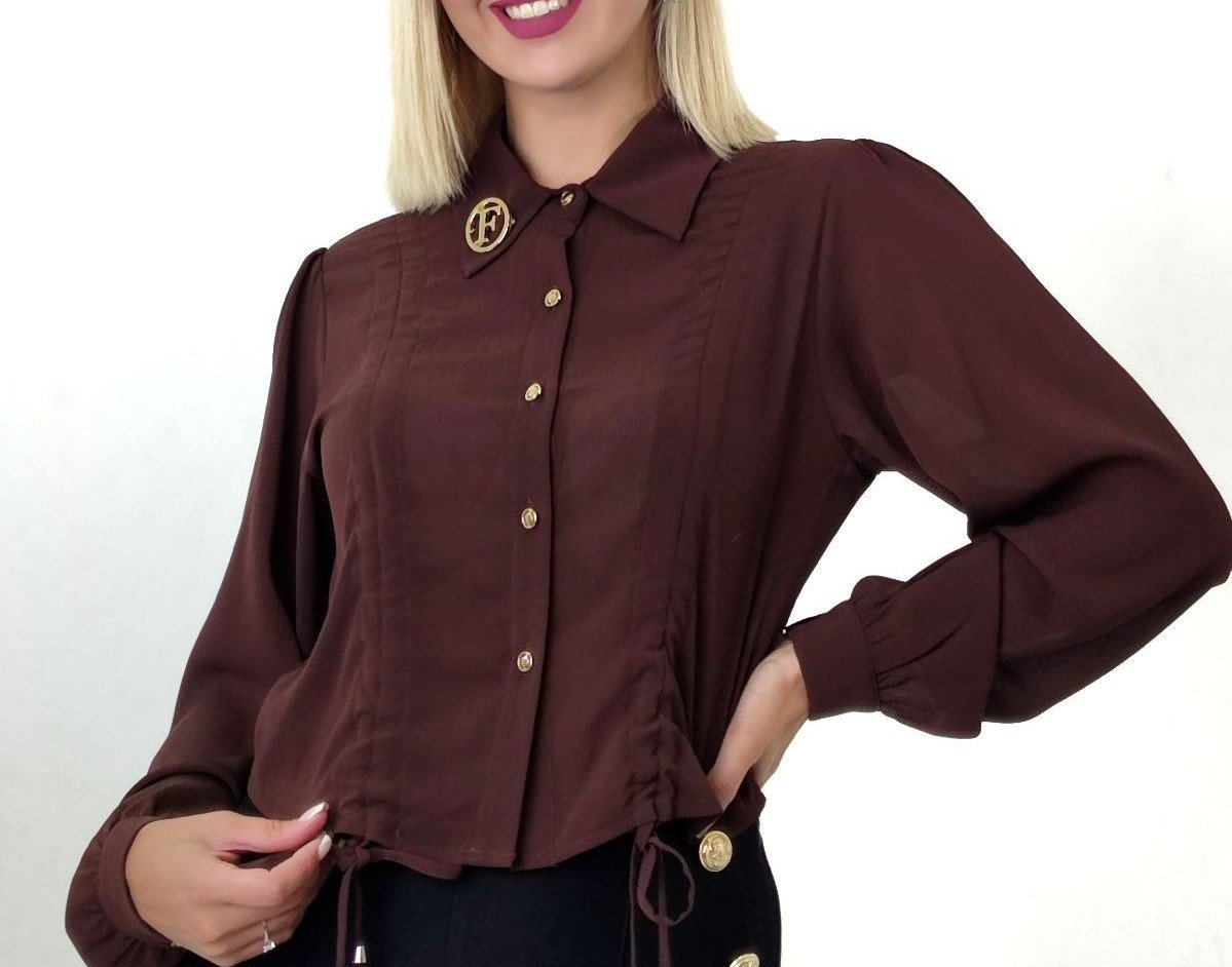 DRAWSTRING BUTTON FRONT BLOUSE