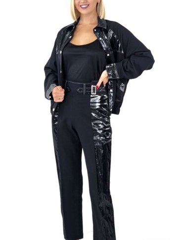 FABRIC AND FAUX LEATHER PANT