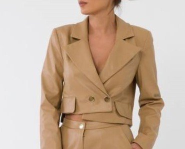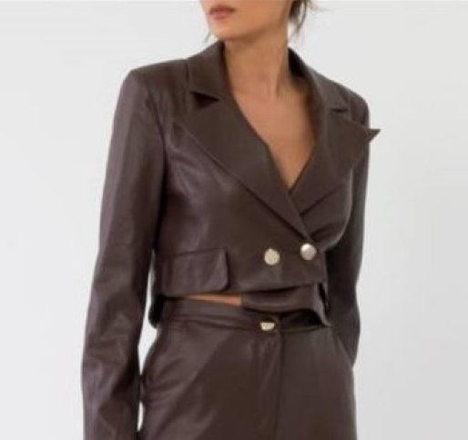 FAUX LEATHER CROP BUTTON DETAIL JACKET