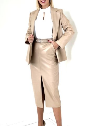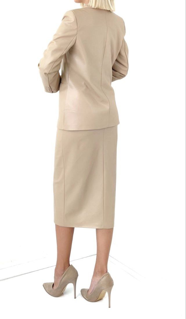 FAUX LEATHER SPLIT FRONT MIDI SKIRT