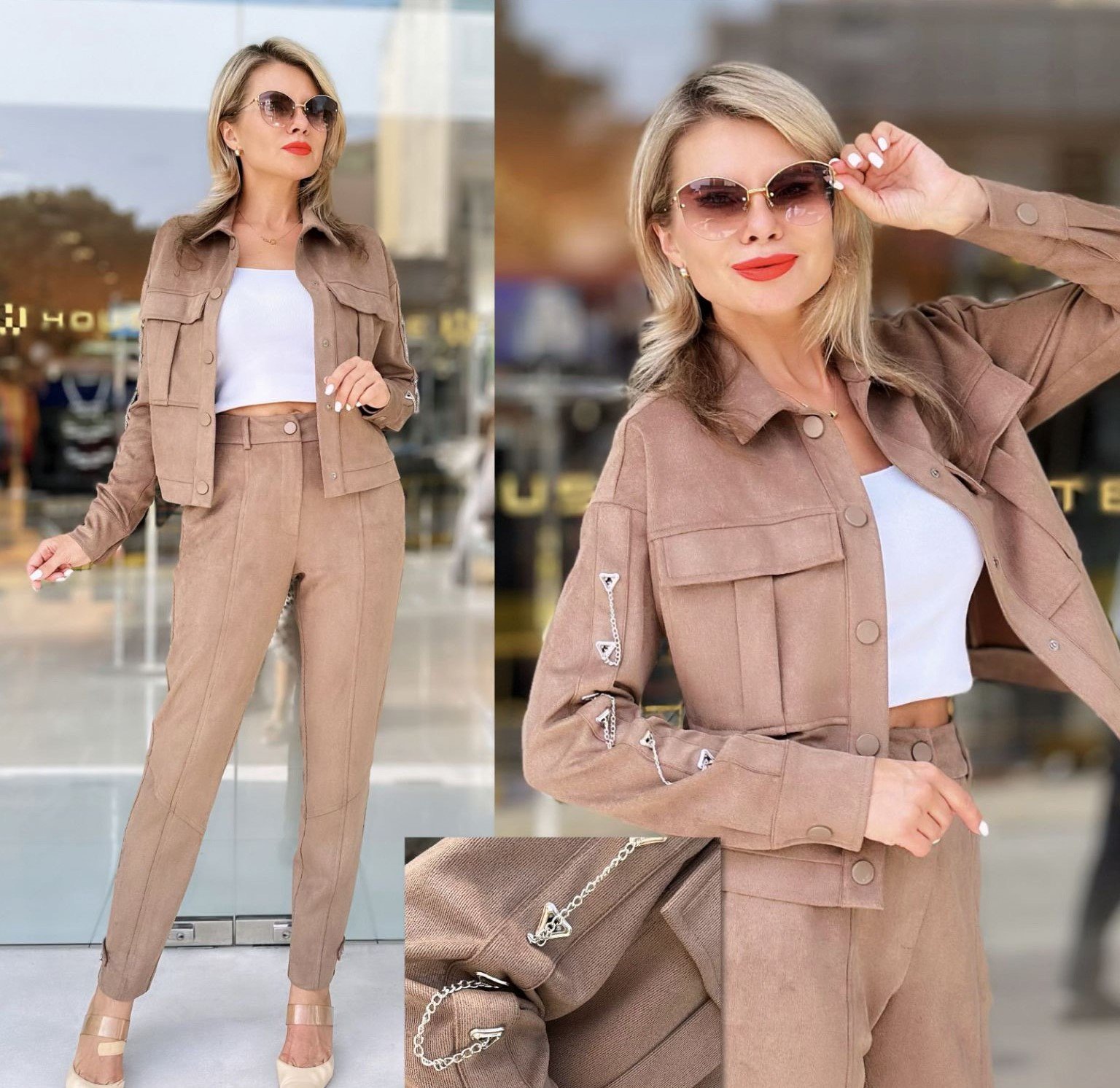 FAUX SUEDE CROP JACKET WITH CHAIN DETAIL SLEEVES