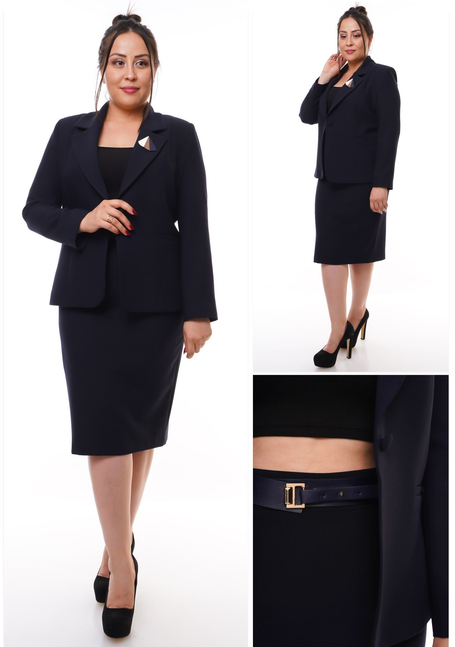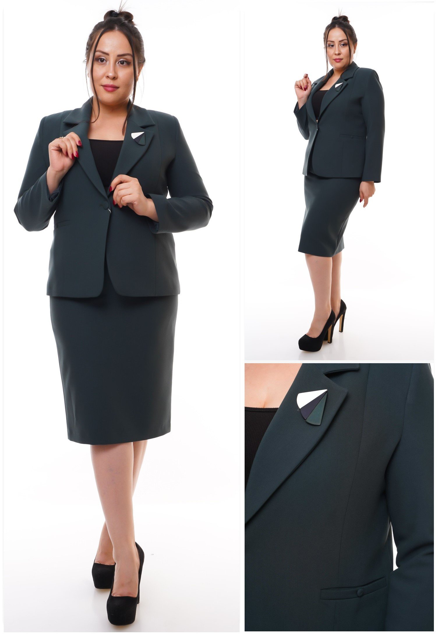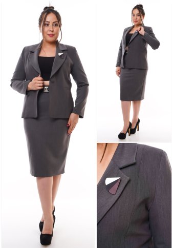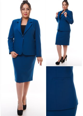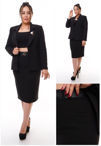 FITTED COLLARED BLAZER WITH FRONT SLASH POCKETS AND MATCHING SKIRT