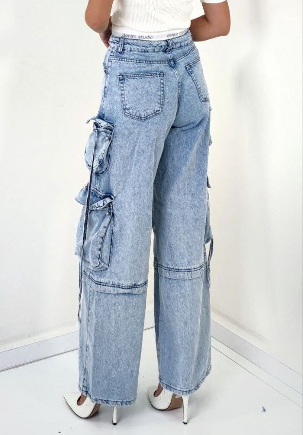 FLARED DOUBLE POCKET CARGO JEANS