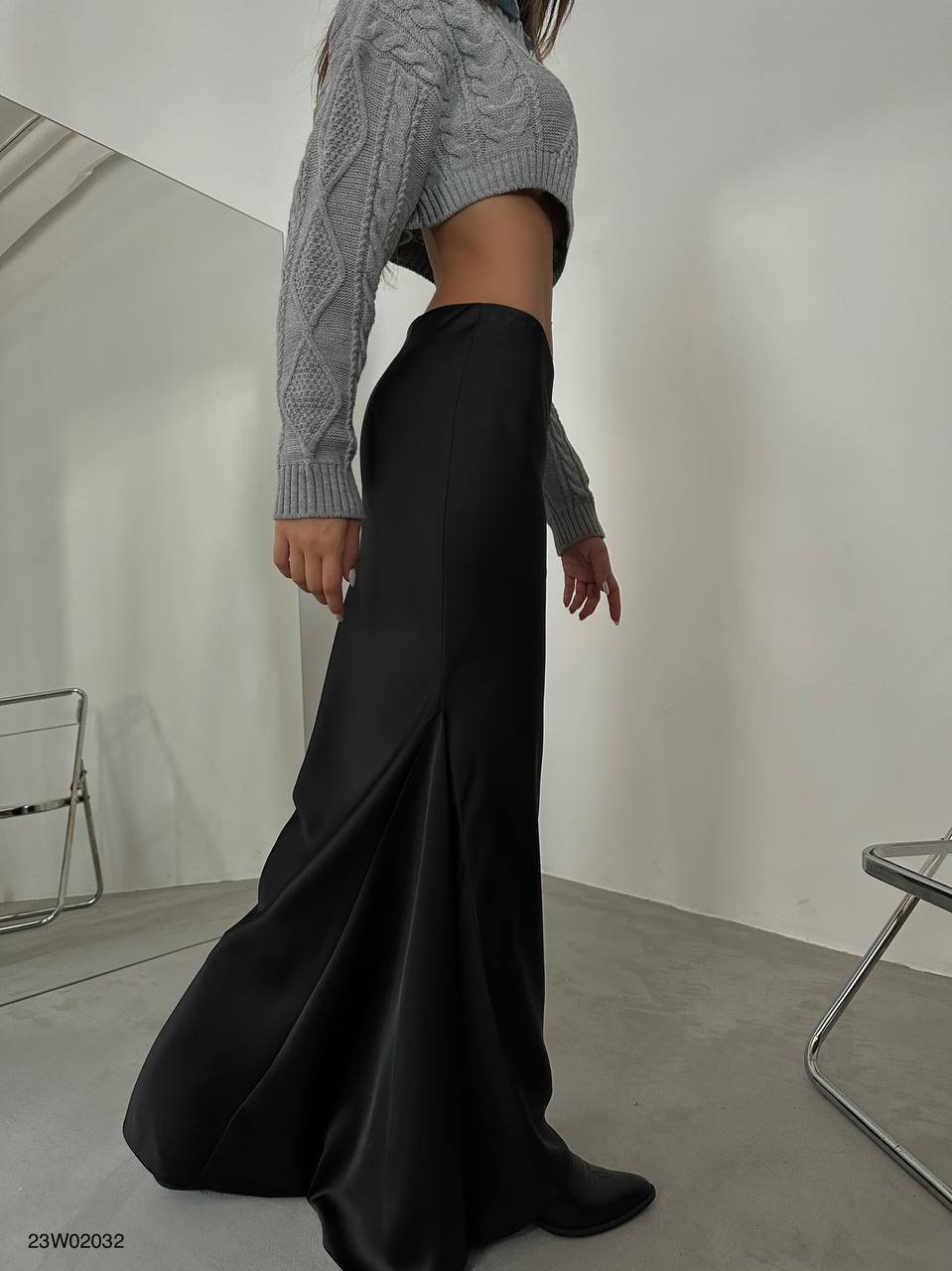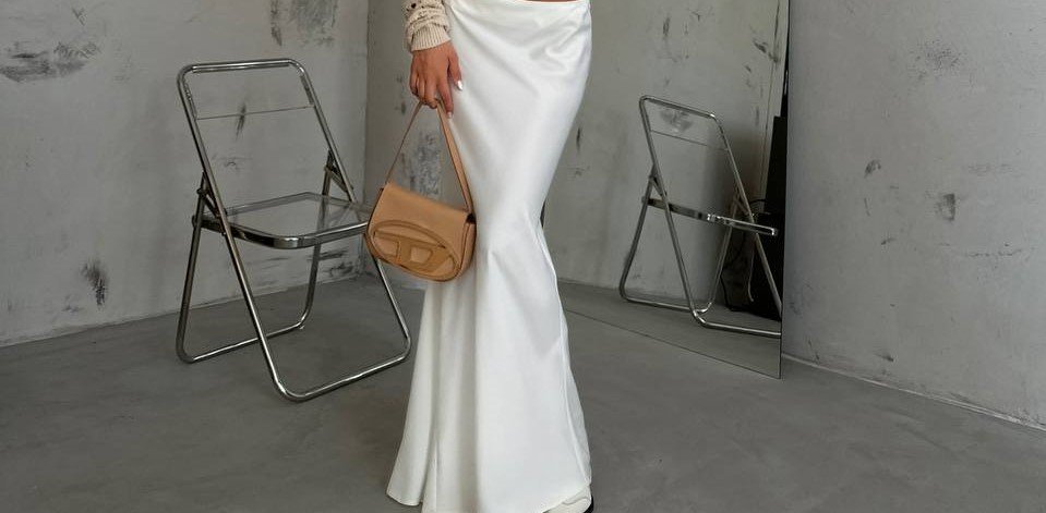 FLUTE FLARED SATIN MAXI SKIRT