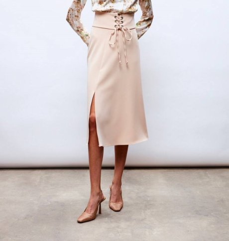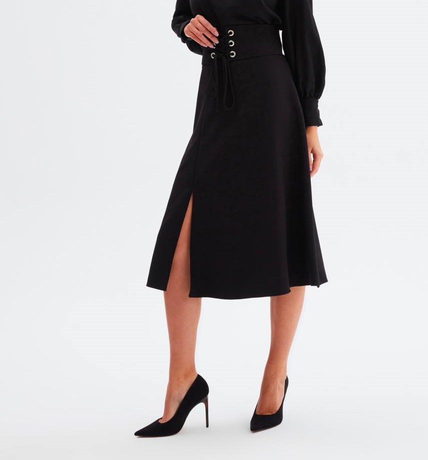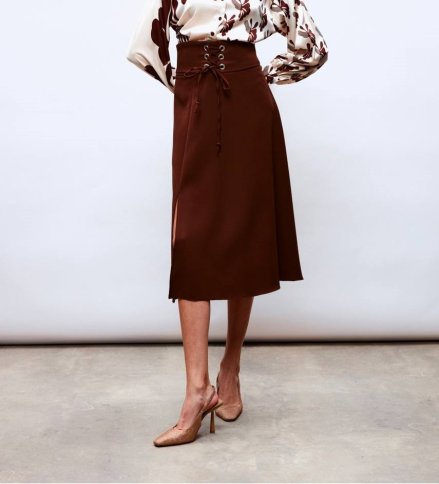 HIGH WAISTED LACE UP FLARED SKIRT