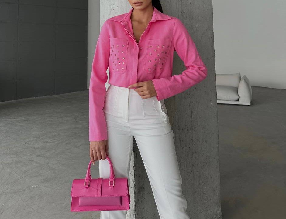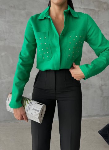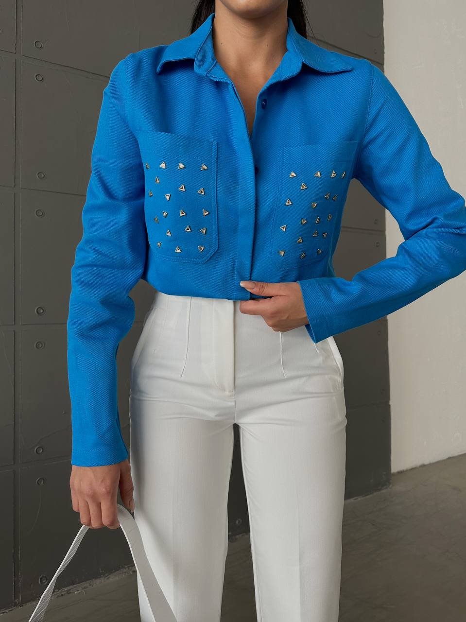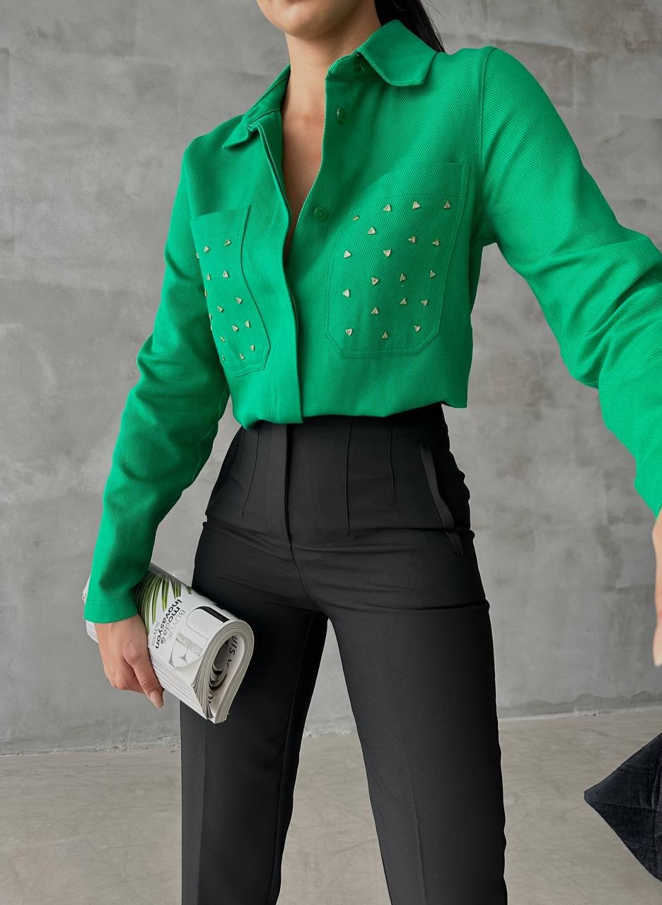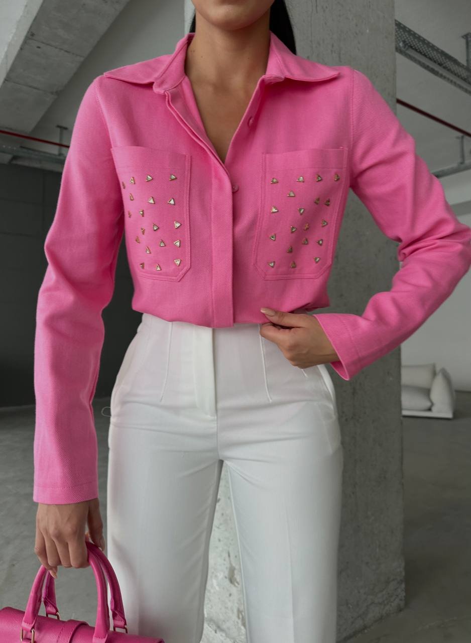 INVISBILE BUTTON FRONT SHIRT WITH METALLIC DETAILS