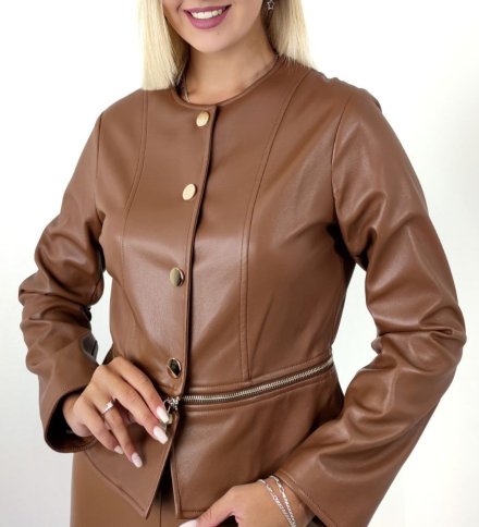 LEATHER LOOK JACKET WITH ADJUSTABLE HEM