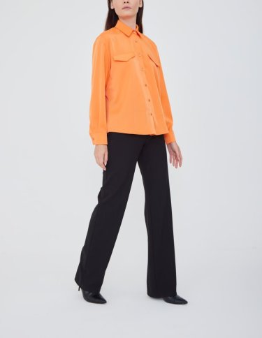 LONG SLEEVE BUTTON FRONT BLOUSE WITH FLAP POCKETS