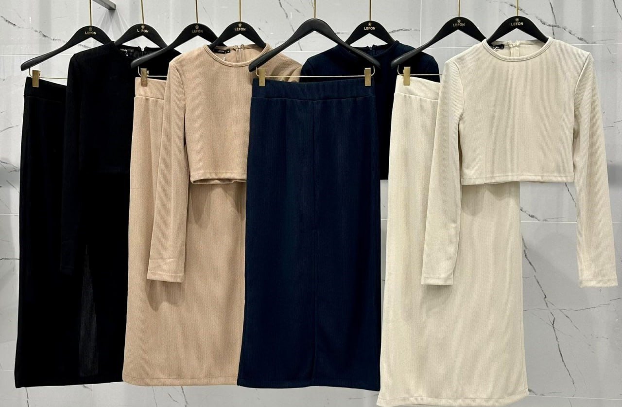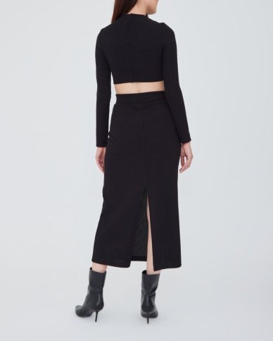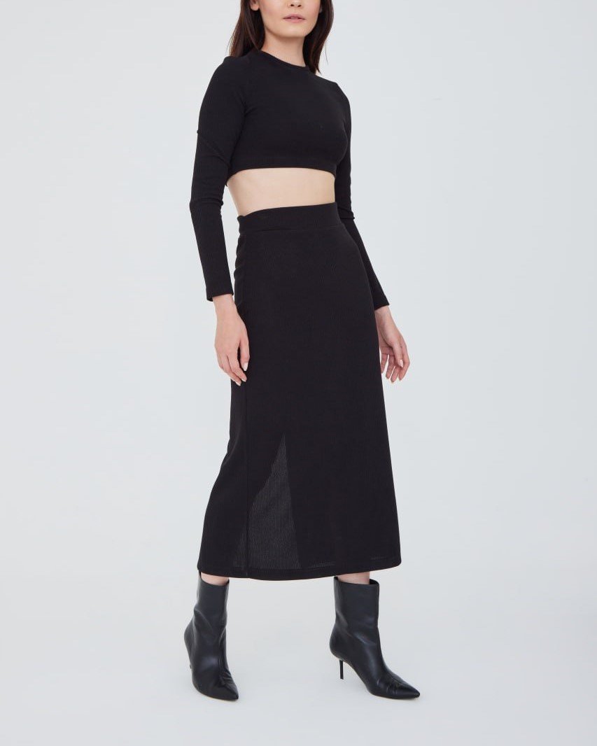 LONG SLEEVE CROP TOP AND FRONT SLIT MIDI SKIRT