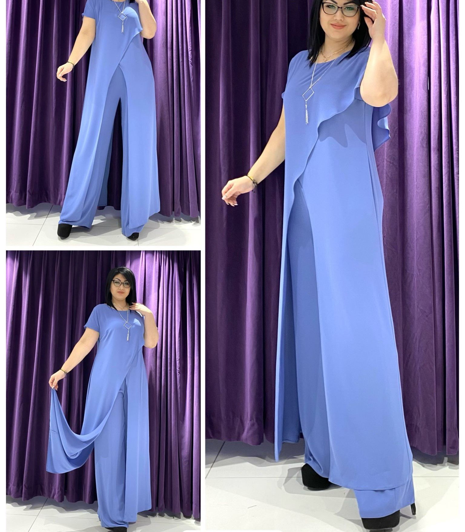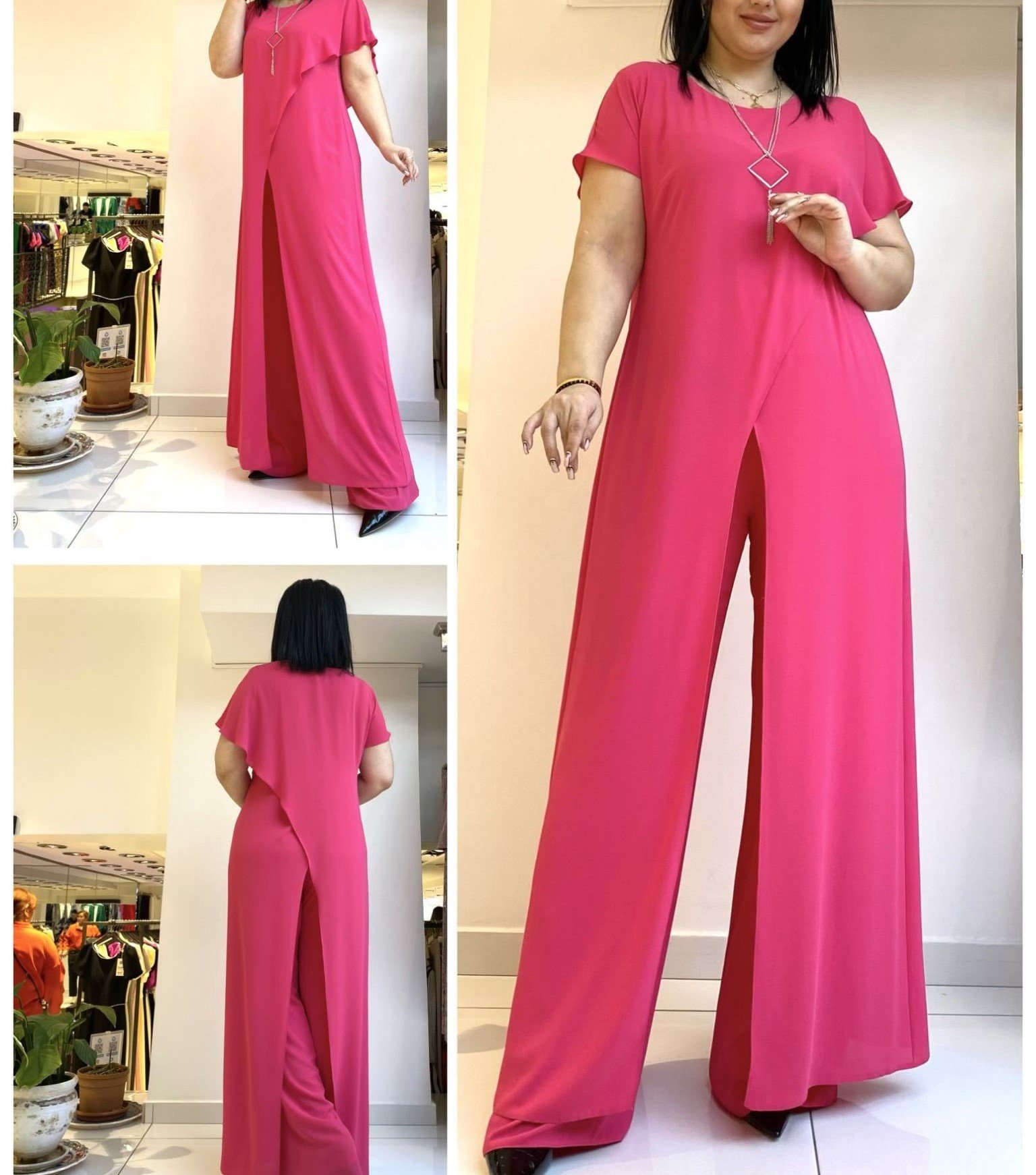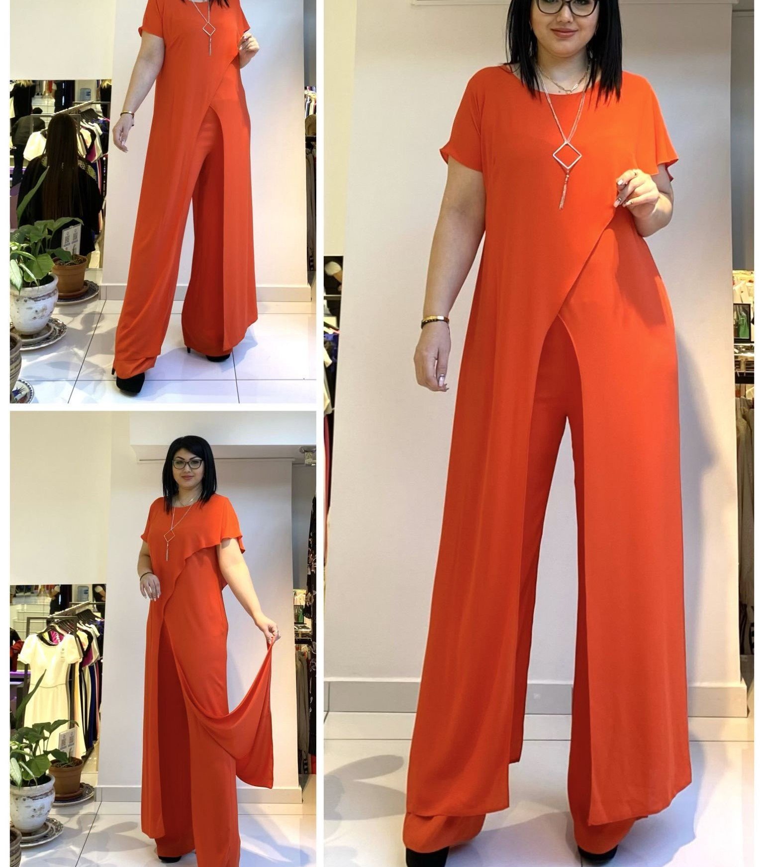 MAXI SHORT SLEEVE TOP WITH OPEN FRONT AND MATCHING PANTS