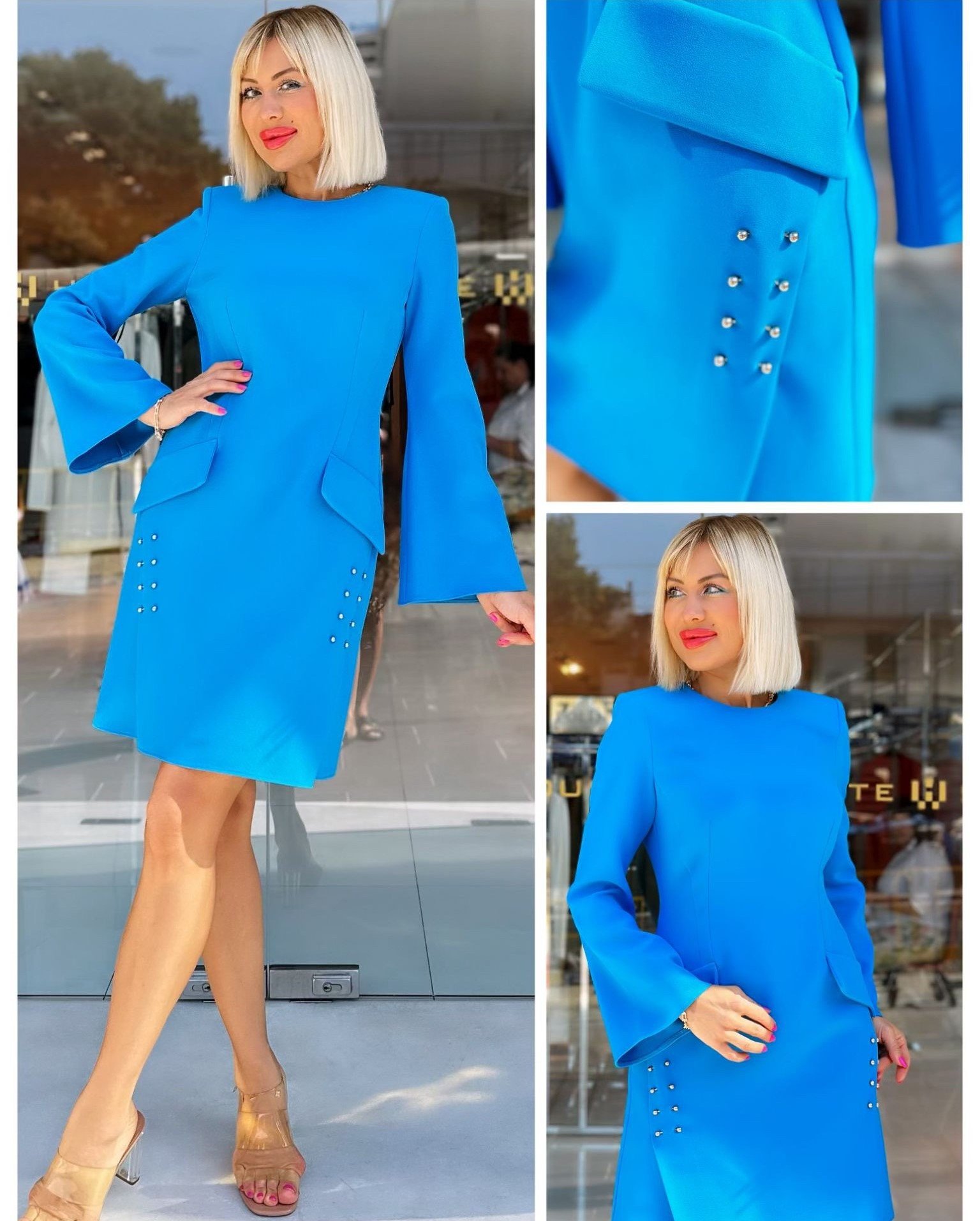 MINI DRESS WITH FAKE FRONT POCKETS