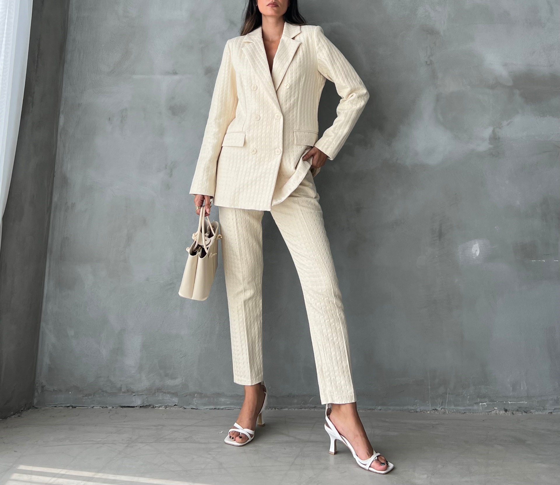 PATTERN FABRIC BLAZER AND PANTS