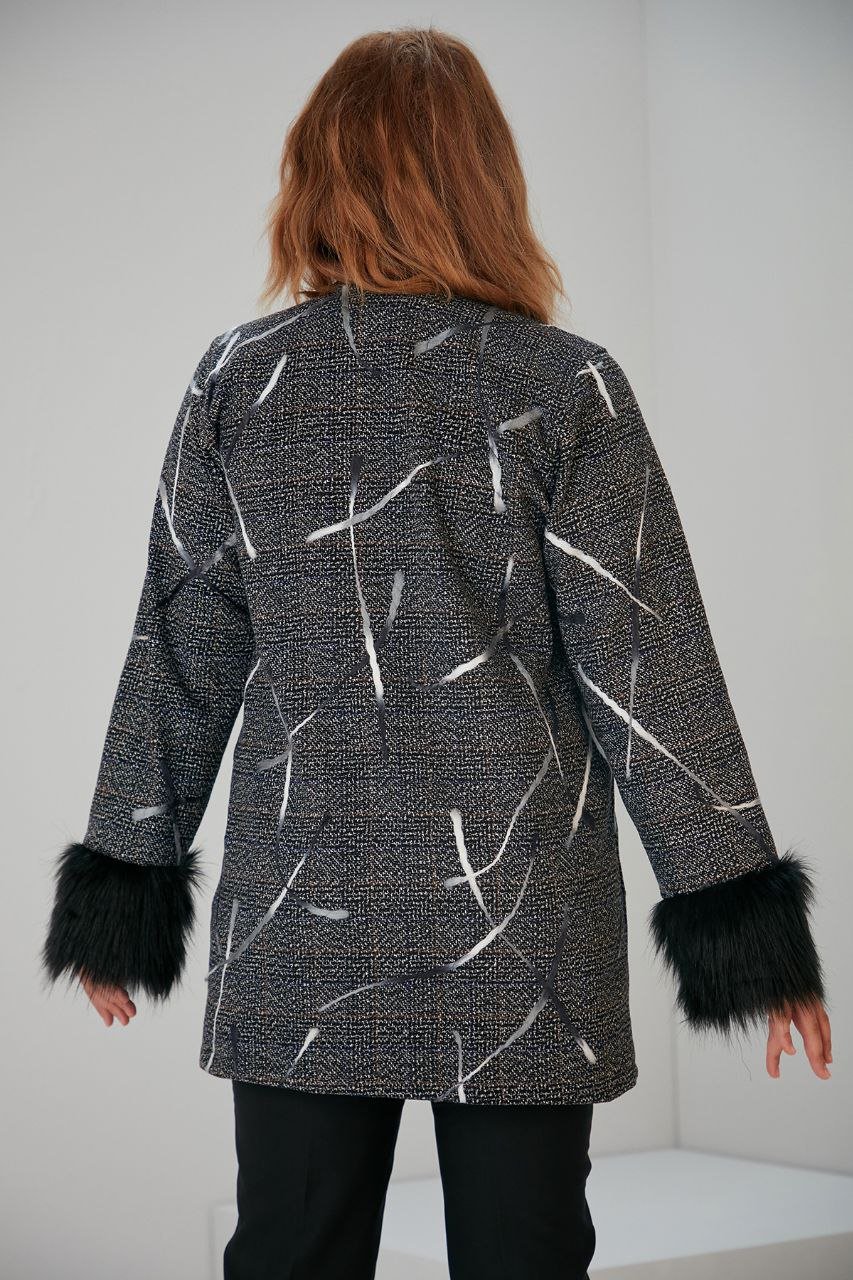 PATTERNED JACKET WITH FAUX FUR CUFFS