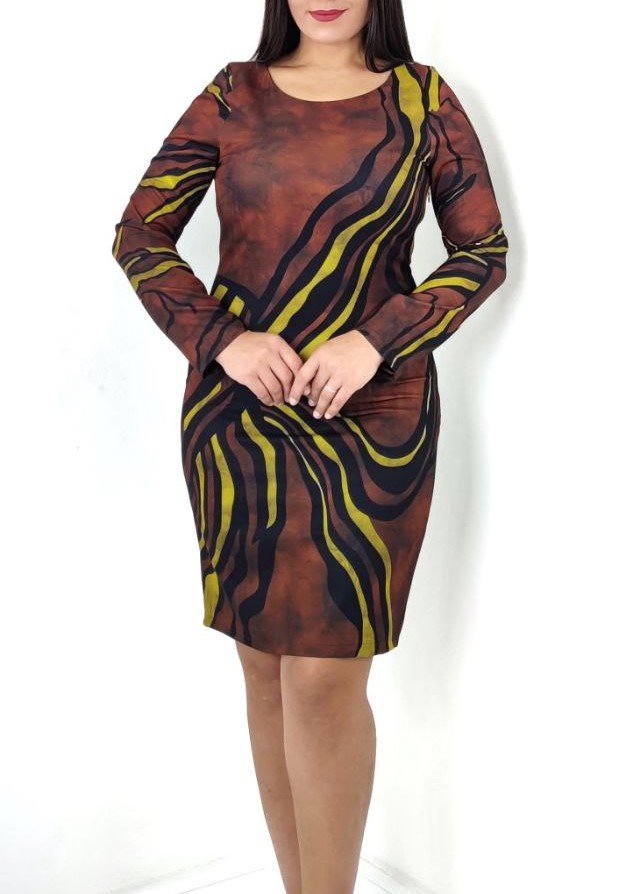 PATTERNED LONG SLEEVED BODYCON DRESS