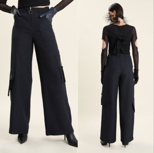 PINSTRIPE ZIPPER FRONT CARGO FLARED PANTS