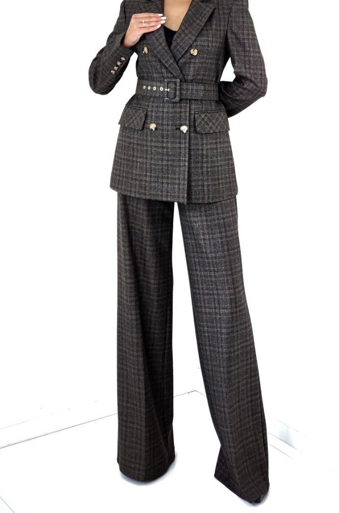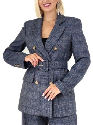 PLAID PATTERN DOUBLE BREASTED JACKET WITH BELT