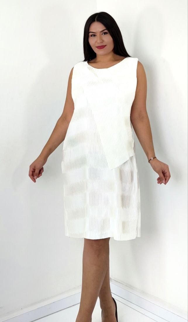 PLEATED SHIMMER SLEEVELESS DRESS