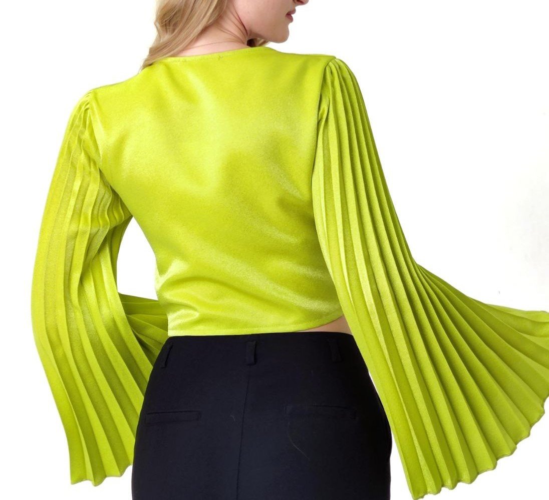 PLEATED WIDE SLEEVE WRAP BLOUSE