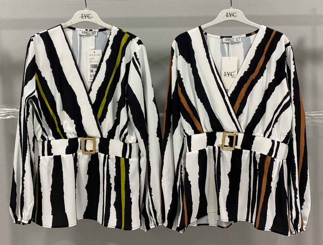 PRINTED LONG V NECK STRIPED BLOUSE
