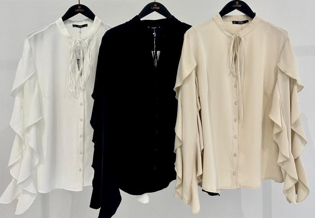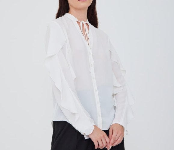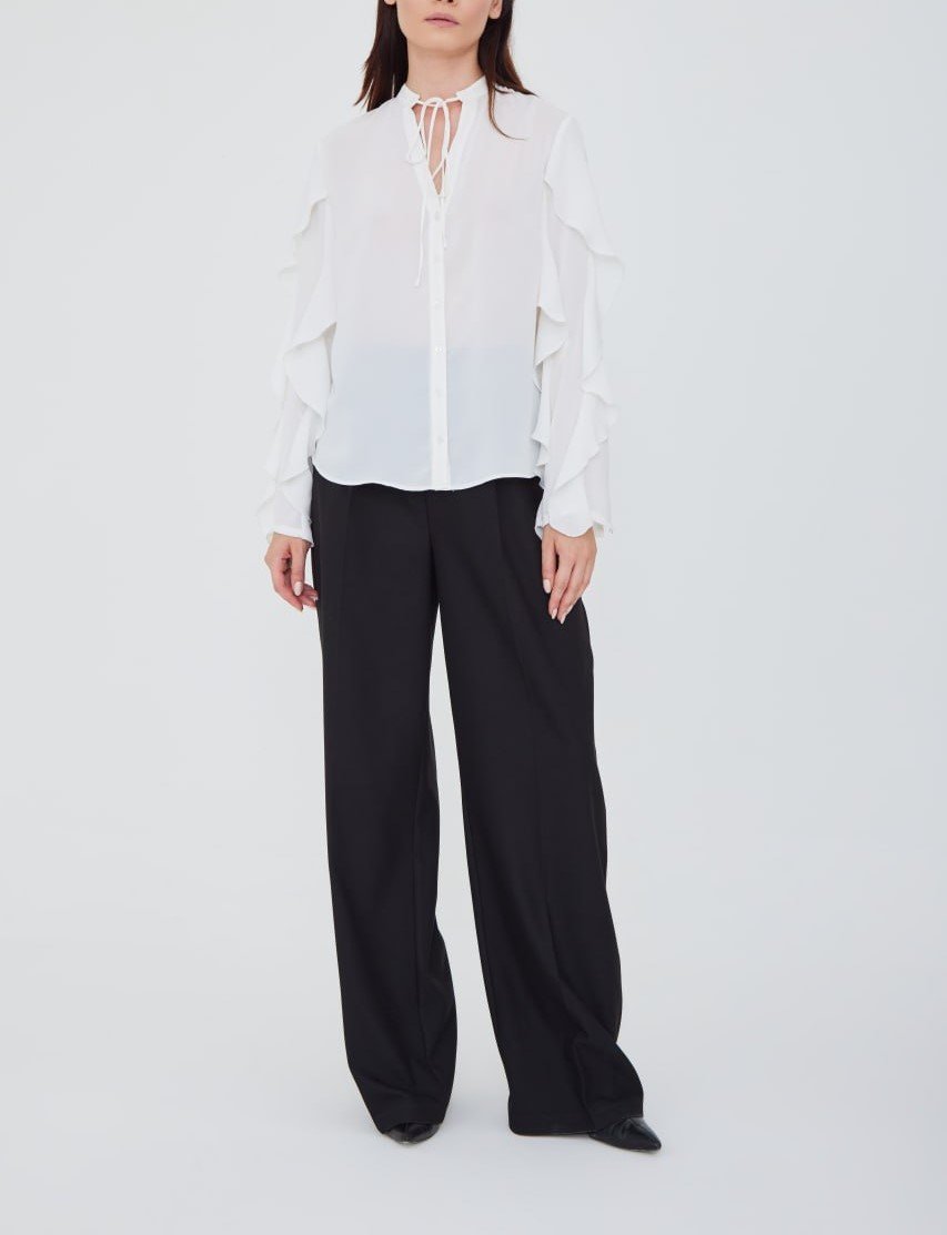 RUFFLED SLEEVE AND TIE TOP BLOUSE