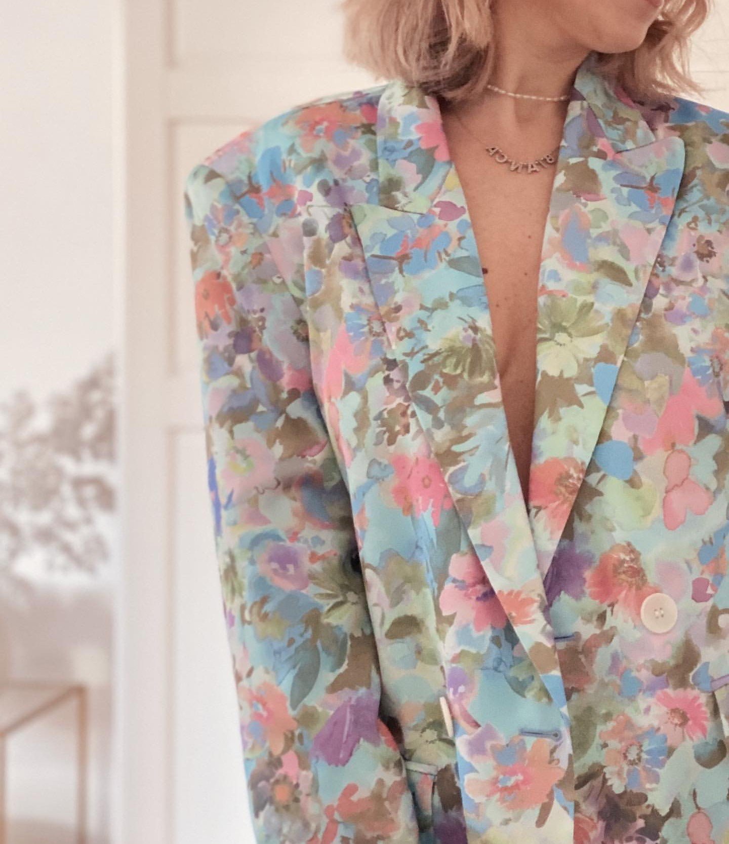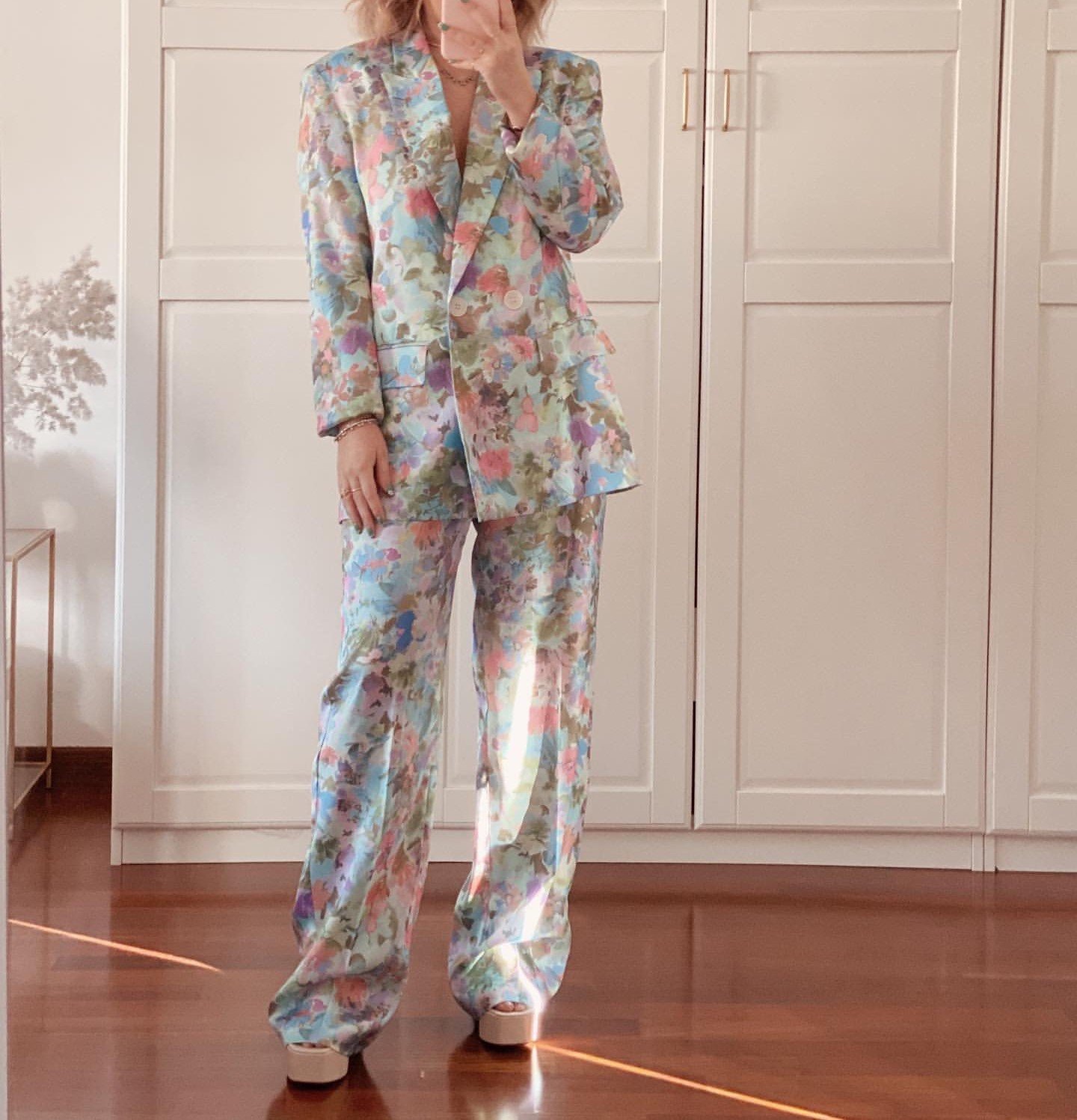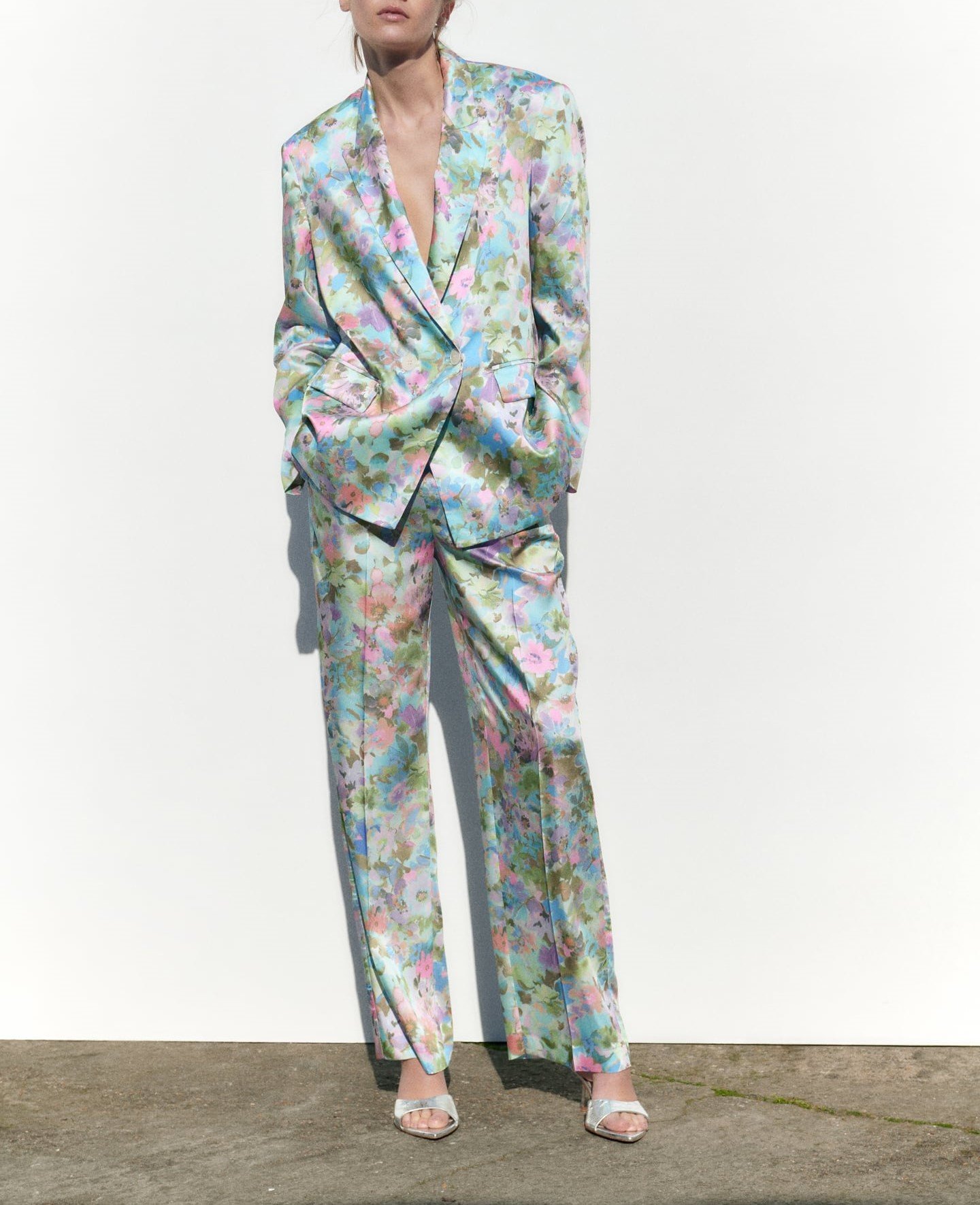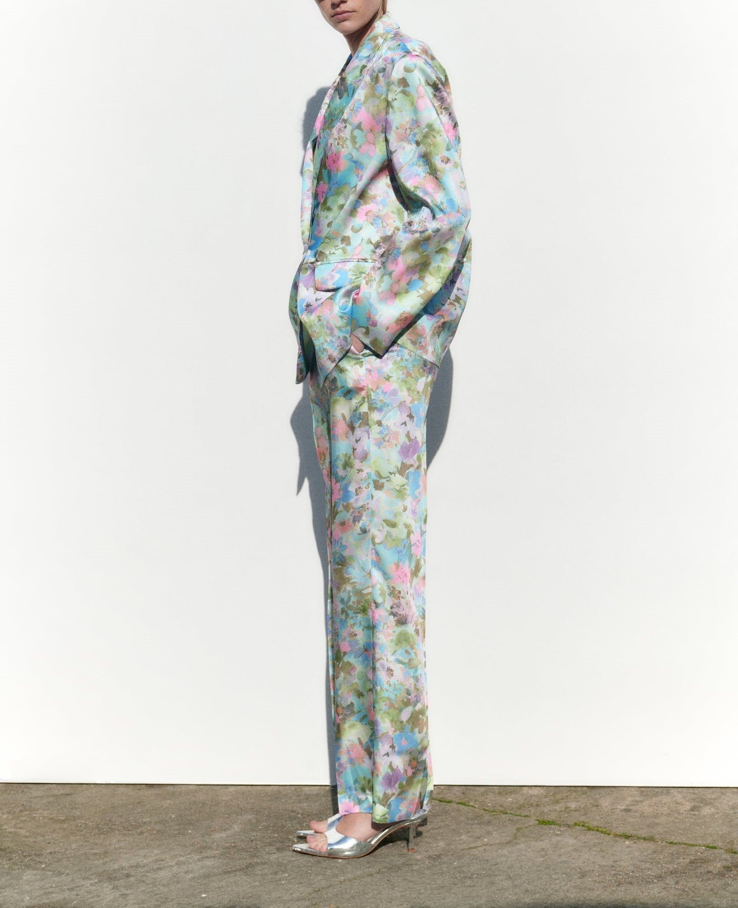 SATIN FLORAL PRINT OVERSIED BLAZER AND PANTS