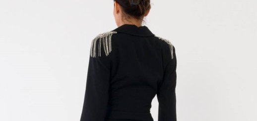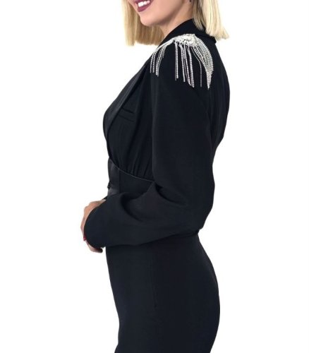 SATIN FRONT CROPPED BLAZER WITH DIAMANTE CLOSURE