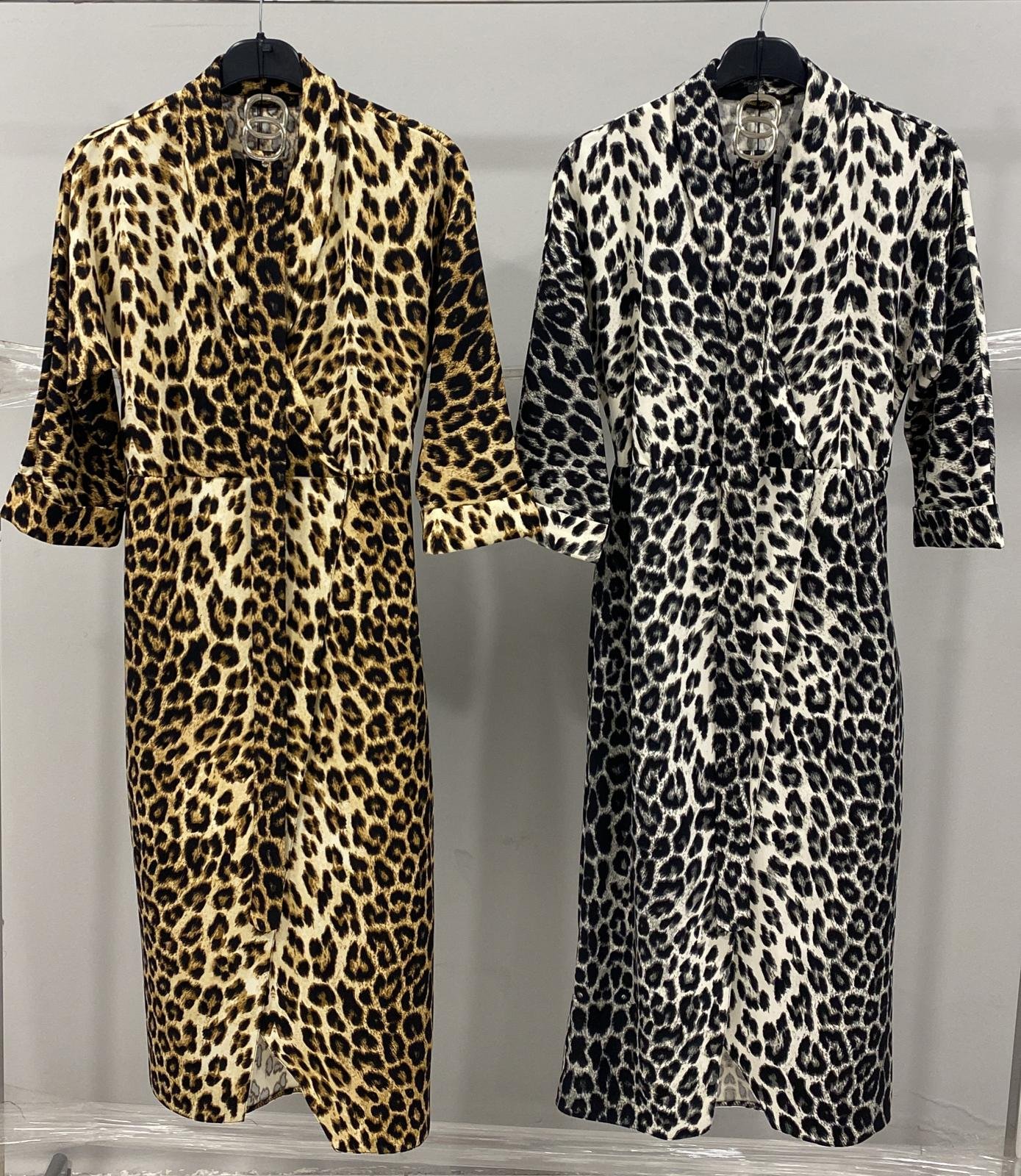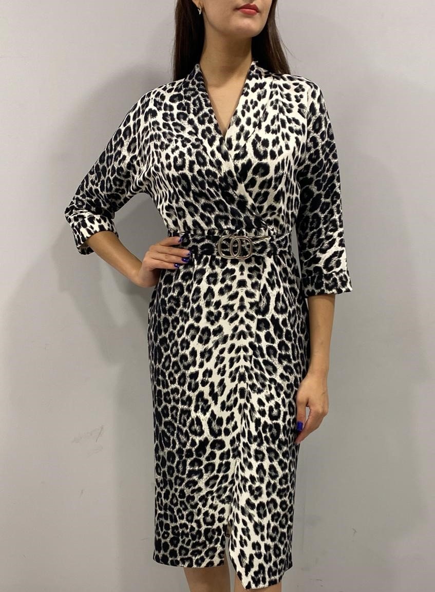 SATIN LEOPARD WRAP DRESS WITH BELT