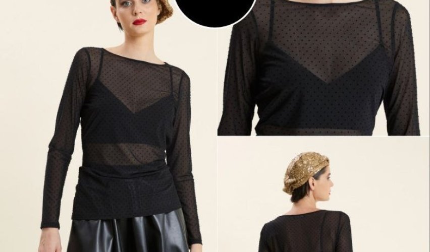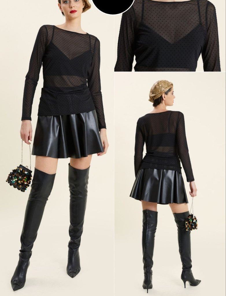 SHEER POLKA DOT PATTERN TOP WITH TIE BACK