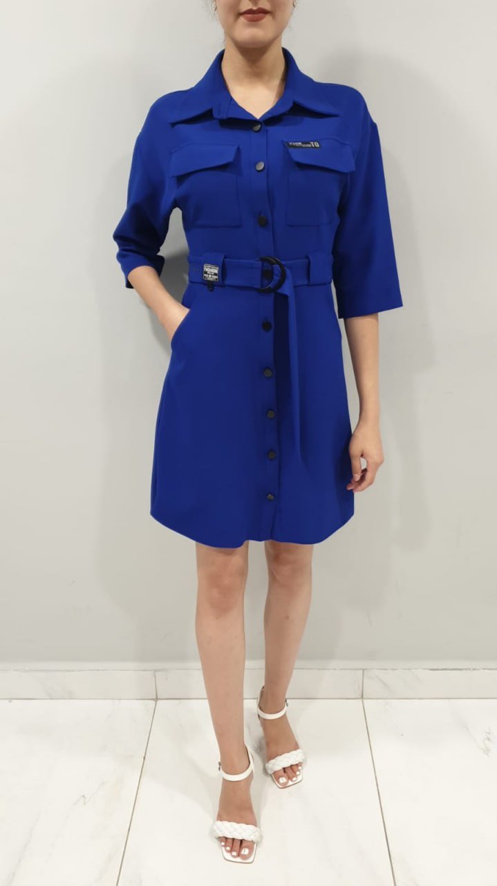 SHIRT STYLE DRESS WIITH CARGO STYLE POCKETS