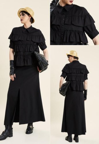 SHORT SLEEVE RUFFLE TIERED SHIRT