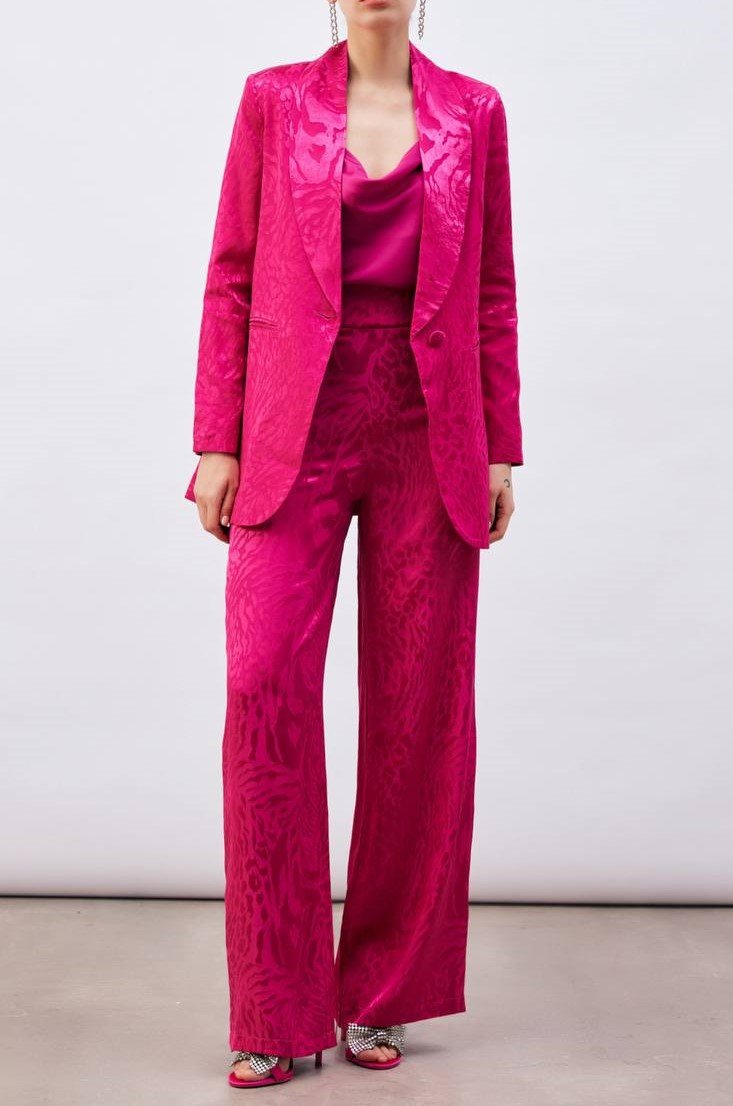 SILKY EMBOSSED PATTERN FLARED PANT