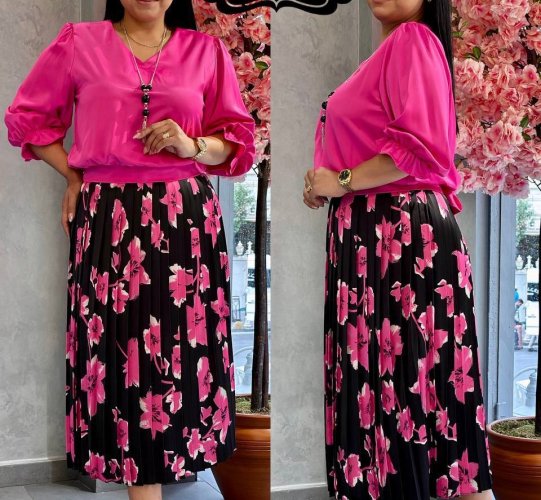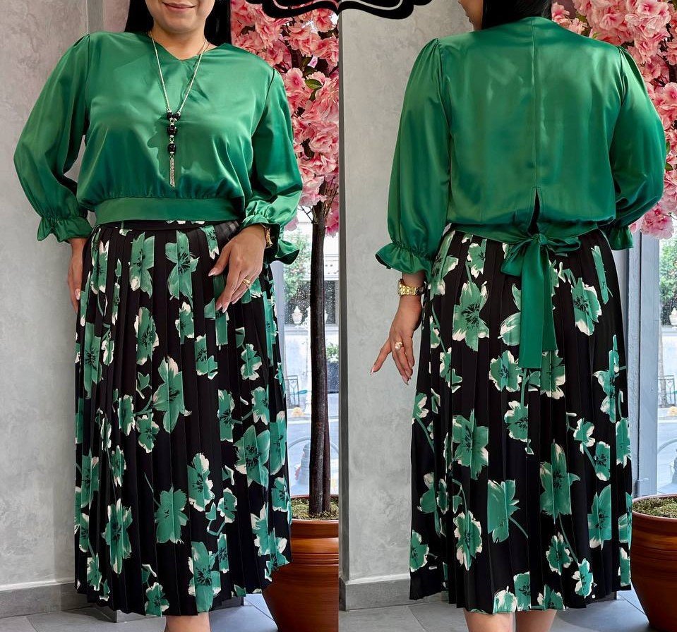 SILKY WRAP TOP AND MIDI FLORAL SKIRT