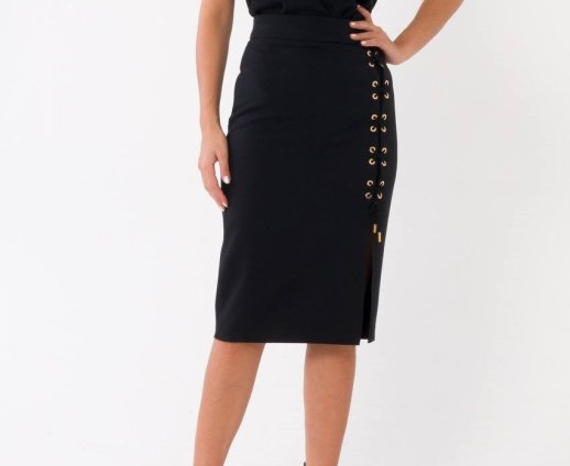 SLIT FRONT SIDE LACEUP MIDI SKIRT