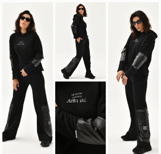SWEATSUIT WITH FAUX LEATHER DETAILS