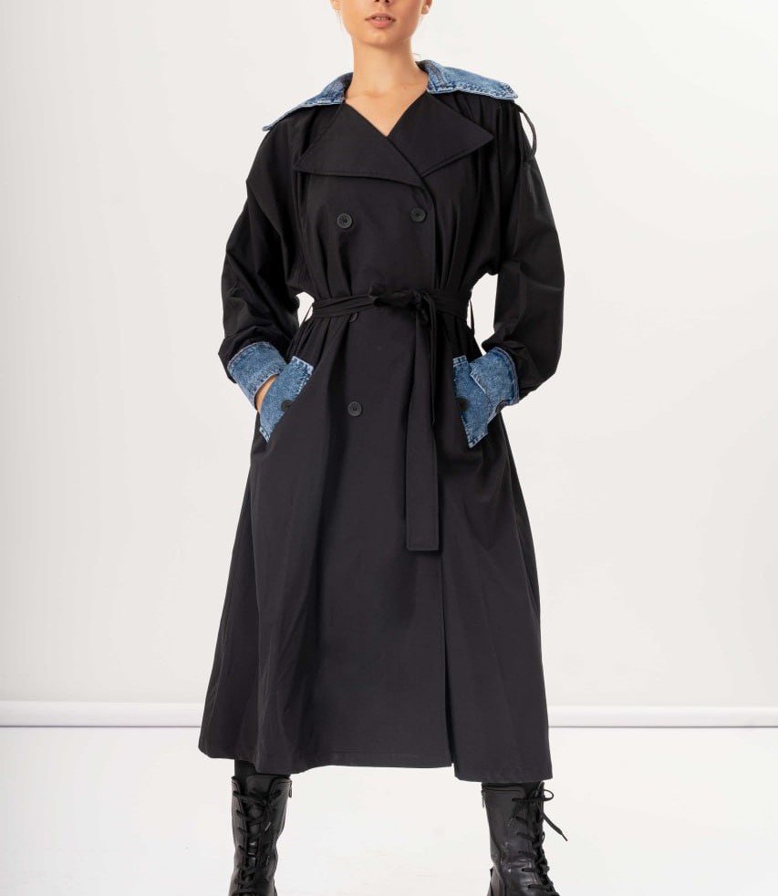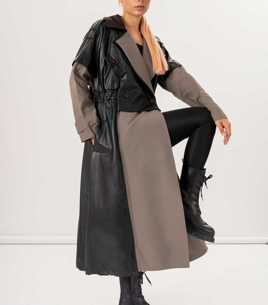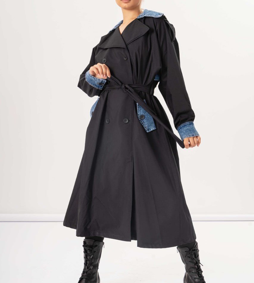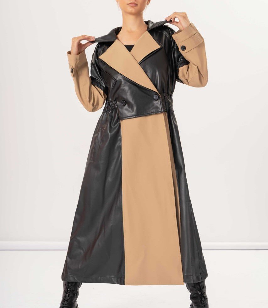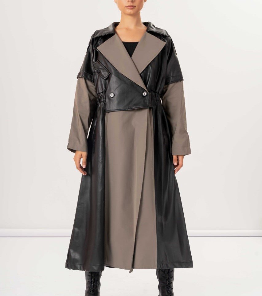 TWO TONE BELTED COAT