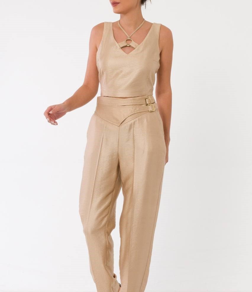 V DESIGN PANT FRONT WITH SIDE BELT BUCKLE