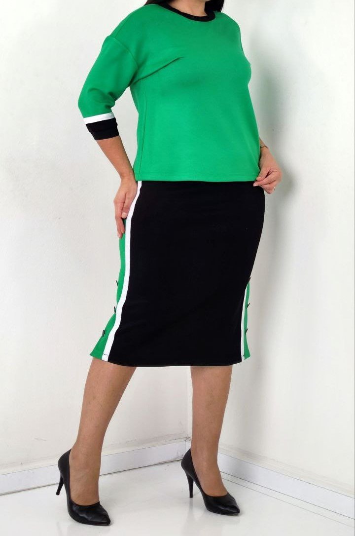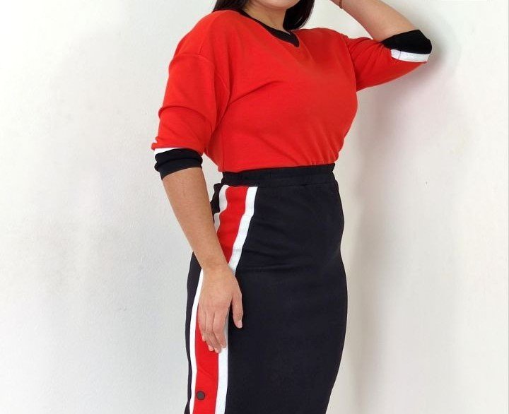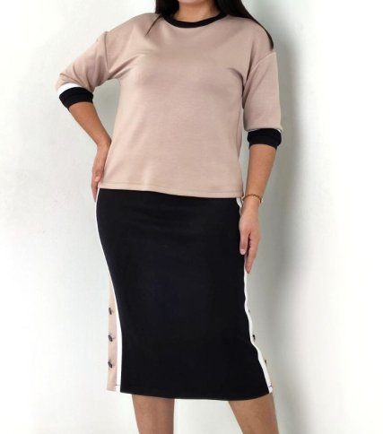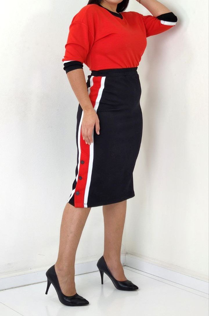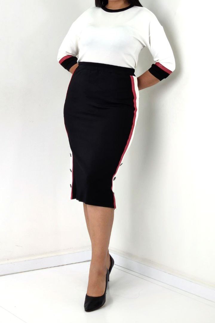 V NECK TOP WITH BODY CON SKIRT WITH SPORT STRIPE DETAILING